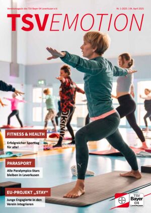 Mit dem Vereinsmagazin TSVEMOTION möchten wir unsere Mitglieder, aber auch weitere Freunde und Förderer des Vereins über die Aktivitäten rund um den TSV Bayer 04 Leverkusen auf dem Laufenden halten. Das Vereinsmagazin wird zum einen über einen Link an alle Interessierte verschickt, darüber hinaus steht es auf der Homepage zum Download bereit. Und natürlich ist an der Information der Kurt-Rieß-Sportanlage von der aktuellen Ausgabe auch eine Druck-Version erhältlich.