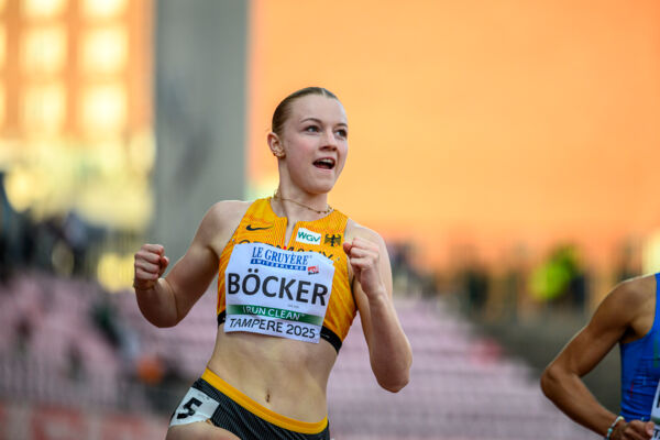 Mit einer Bestzeit von 11,40sek stieß Sprinterin Anne Böcker in diesem Jahr bereits in eine neue Dimension über die 100m vor. Das erlaufene Selbstvertrauen wollte die Athletin von Andreas Gentz mit nach Tampere nehmen und sich einen Finalplatz sichern. In ihrem Vorlauf wurde sie in 11,68sek Zweite und sicherte sich so zunächst einen Platz im Halbfinale. Hier zeigte sie erneut ihre Stärke im fliegenden Sprint und belegte in ihrem Lauf in 11,65sek Platz zwei. Hiermit löste sie als eine von drei deutschen Athletinnen und als Fünftschnellste der Halbfinalläufe das Finalticket. In diesem erwischte sie einen sehr guten Start und kämpfte bis zum Schluss um die vorderen Ränge. In 11,59sek wurde sie schließlich als schnellste deutsche Athletin Fünfte. Es war das drittschnellste Rennen ihrer jungen Karriere. Zur Bronzemedaille, die sich die Ukrainerin Uliana Stepaniuk schnappte, fehlten nur sechs Hundertstelsekunden.