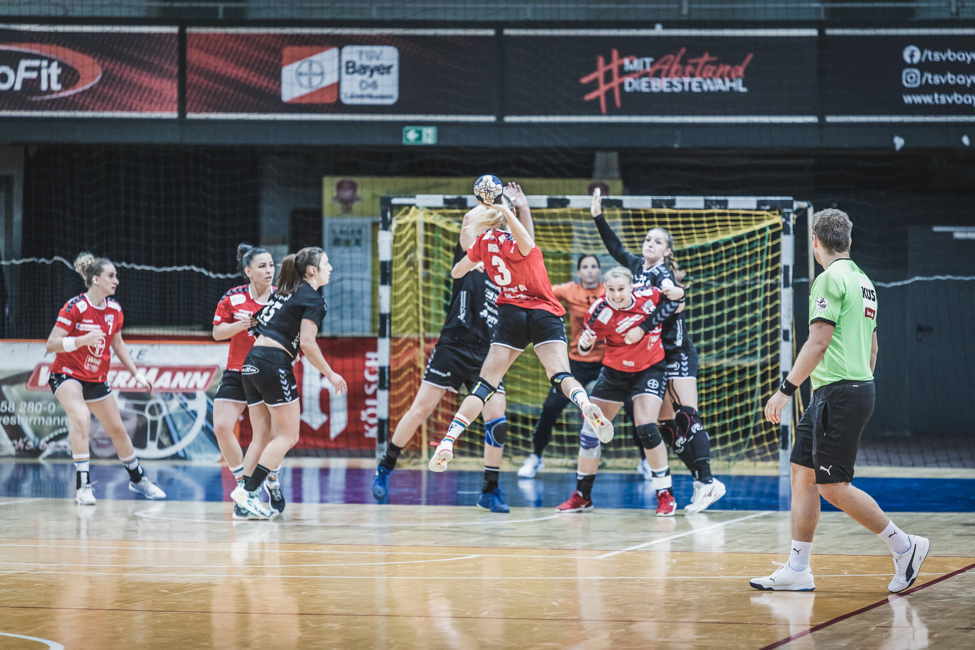 Leverkusen: Fehr (bei zwei 7m), Graovac; Jurgutyte (2), Hinkelmann (n.e.), Sprengers (9/2), Zschocke (5), Holste (n.e.), Souza, Kämpf (n.e.), Bruggeman (2), Polsz, Einarsdottir (2), Huber (7/3), Cormann (n.e.), Terfloth (n.e.); Trainer: Michael Biegler/Renate Wolf.
