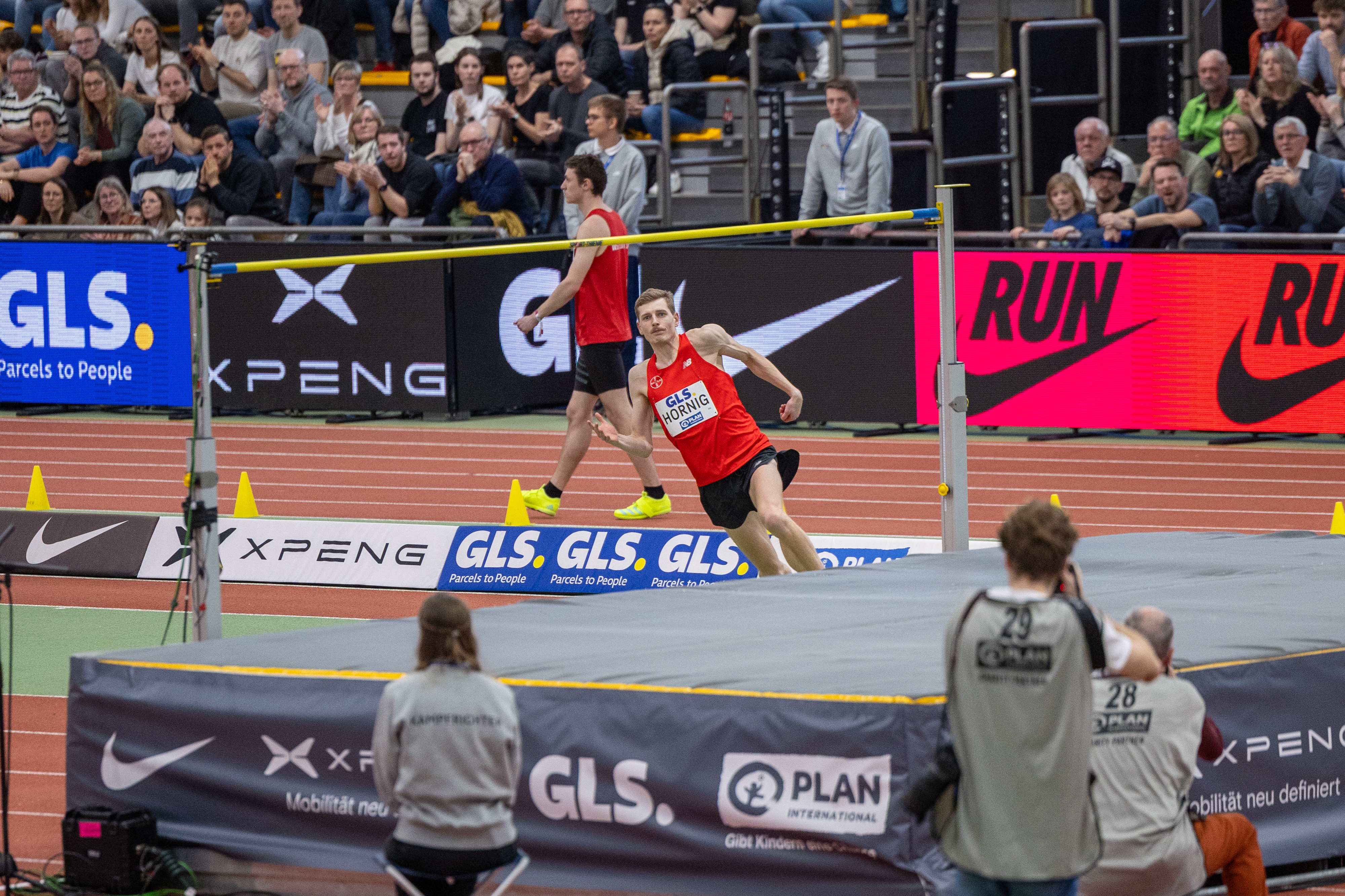 Im Hochsprung der Männer war mit Florian Hornig ebenfalls ein fester Medaillenkandidat am Start. Nach soliden Sprüngen über 2,00m und 2,05m gelang es dem Schützling von Hans-Jörg Thomaskamp nicht weiter, seine Fähigkeiten auf die Bahn zu transportieren, sodass er bei den folgenden 2,10m drei Mal knapp scheiterte. Hiermit landete er schließlich auf Rang vier.