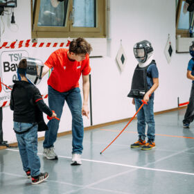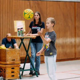Da bekamen auch die ganz jungen Interessierten große Augen, bevor sie sich selbst wieder ans Werk begaben. Vor allem die vielen Stationen der Kinderolympiade hatten es den Kiddies angetan. Dort konnten sie diverse Sportarten ausprobieren, sei es zum Beispiel beim „Baggern“ mit den Volleyball-Trainern, beim Boxen im echten „Ring“ oder beim Sprinten durch die Lichtschranke. Und zwischendurch war die Wahrscheinlichkeit hoch, dass die Jungen und Mädchen noch ein Foto mit einem der drei Maskottchen abgreifen konnten. Sowohl TSV-Tiger Paule als auch Lionel von den BAYER GIANTS und Werkself-Vertreter Brian the Lion waren in den Hallen unterwegs und verbreiteten zusätzlich gute Stimmung.