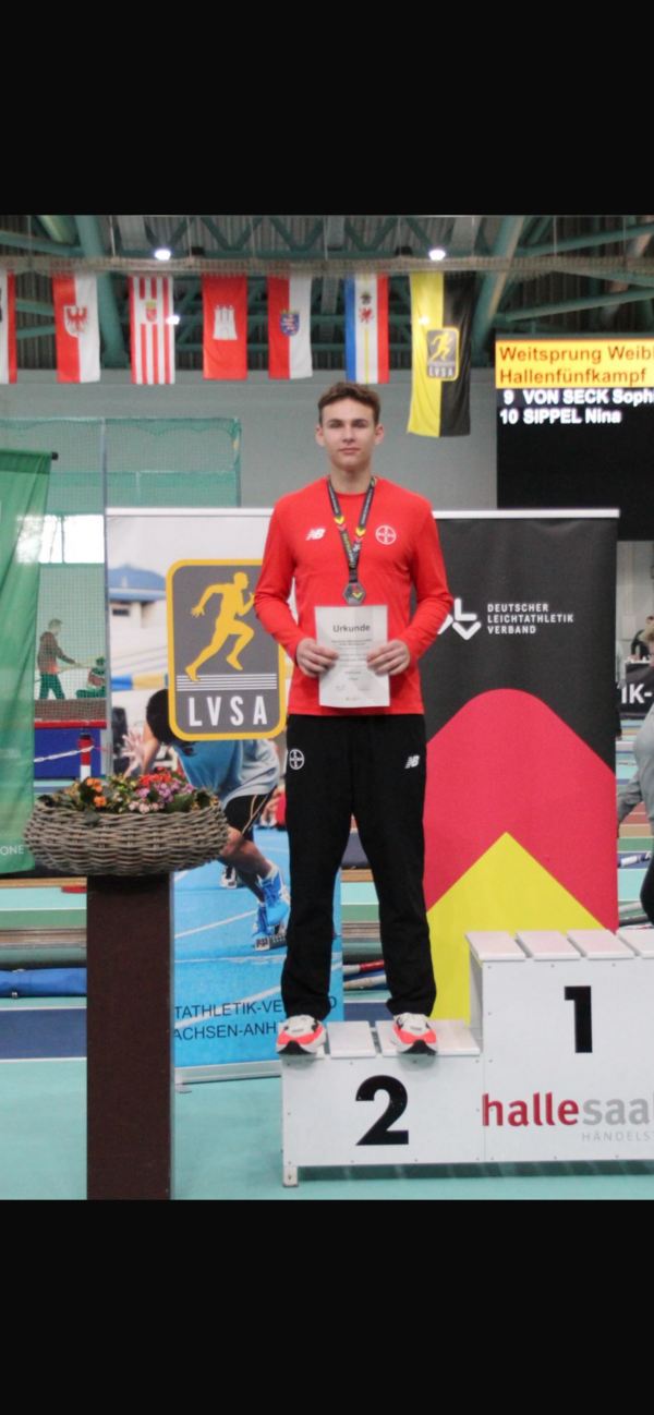 Im Siebenkampf der männlichen U20 war der TSV in Halle/Saale gleich doppelt vertreten. Mit dem amtierenden Freiluft-U18-Vizemeister im Zehnkampf, Lennox Giesen, sowie dessen Trainingspartner Mark Odenthal. Während Lennox im Kampf um die Medaillen mitmischen wollte, hatte Mark eine Platzierung unter den Top Acht im Blick.