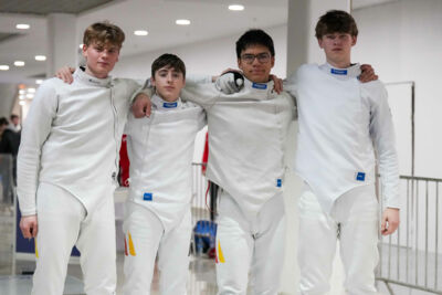 Mit der Nominierung für den Einzelwettkampf gab es gleichzeitig die Nominierung für die Nationalmannschaft. Im ersten Gefecht schlugen die Herren souverän Georgien mit 45:22. Danach ging es gegen die besser gesetzte Mannschaft aus der Ukraine. Auch hier konnten die Herren überzeugen und gewannen knapp mit 45:43. Im Tableau der besten 8 trafen sie auf unsere Nachbarn aus Belgien in einem nervenaufreibenden Gefecht schafften es die deutschen Herren dennoch ruhig zu bleiben und entschieden auch dieses Gefecht für sich (45:42). Danach trafen sie auf Frankreich. Hier mussten sie sich gegen den späteren Europameister 45:31 geschlagen geben. Im Gefecht um die Bronze Medaille musste sich das deutsche Team gegen Italien 45:31 geschlagen geben. Am Ende steht ein sehr guter 4. Platz für das junge Team bei ihrer ersten EM.