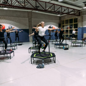 Jumping Fitness® ist ein intensives Kraftausdauertraining in der Gruppe zu energiegeladener Musik, auf speziell dafür entwickelten Trampolinen. Du trainierst Dein Herzkreislaufsystem, Deinen Gleichgewichtssinn und Deine Koordination. Zusätzlich werden der passive und aktive Bewegungsapparat, die Tiefenmuskulatur sowie die Bauch- und Hüftbeugemuskulatur gekräftigt. Jumping Fitness besteht zum einen aus Basisschritten, kreativen Arm- und Beinbewegungen und schnellkräftigen Sprüngen und zum anderen aus konzentrischen und exzentrischen Kraftübungen.